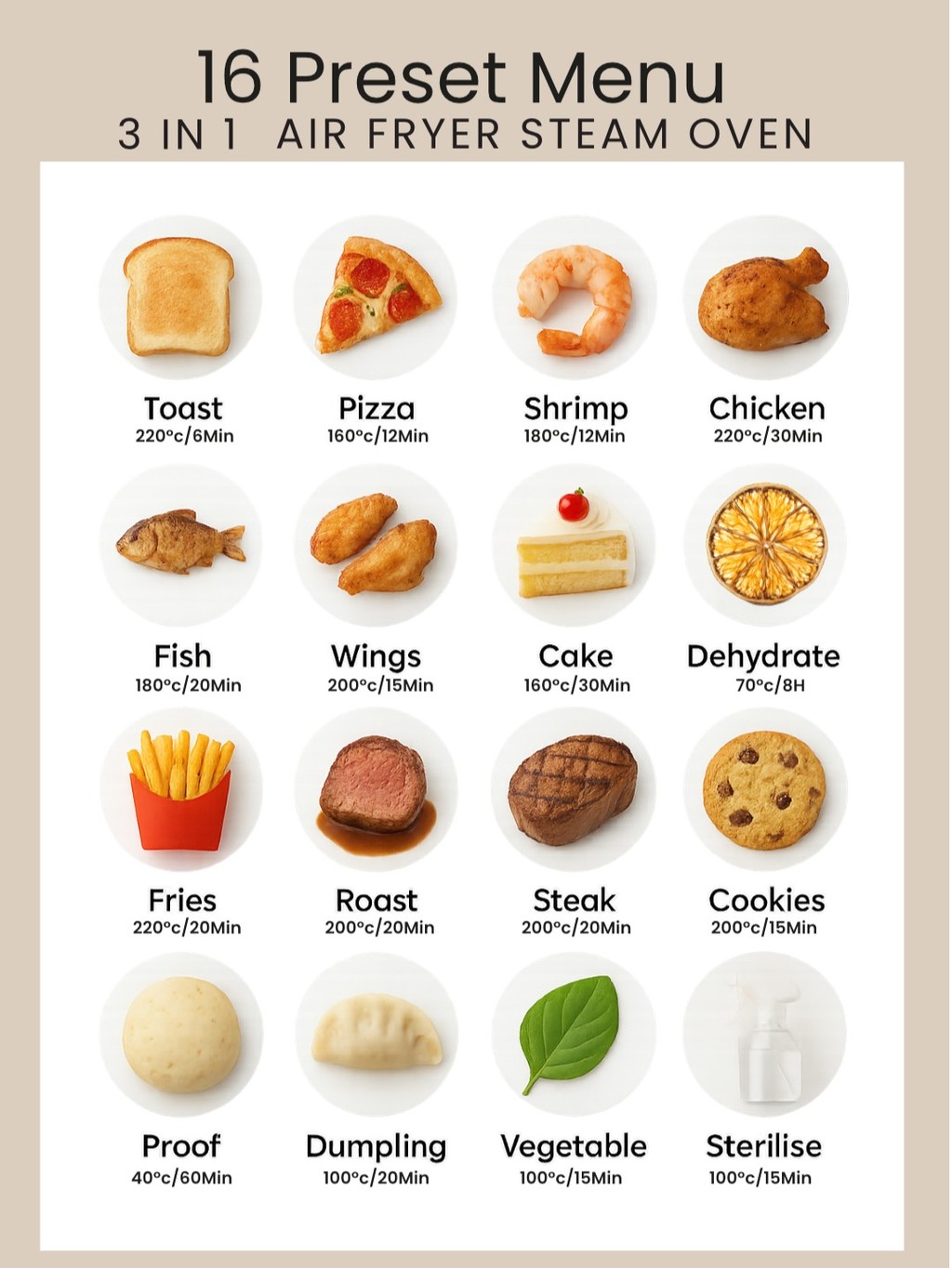 1. 3-in-1 Multi-Function Design (Steam + Bake + Air Fry)