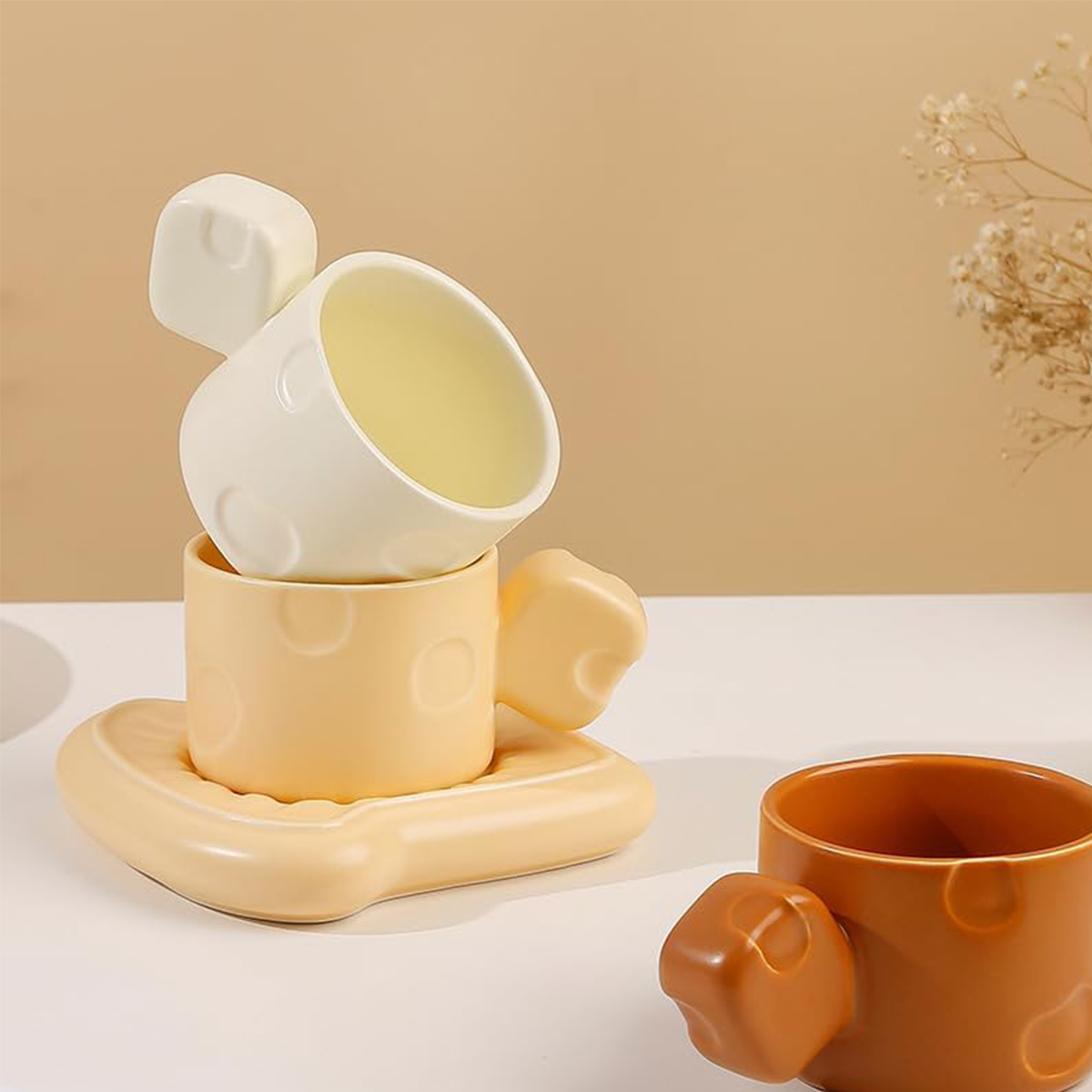 This European-style cheese coffee cup combines elegance with a playful design inspired by cheese. Featuring smooth curves and a refined finish, it’s perfect for enjoying your favorite coffee, tea, or hot beverages. The cup's unique aesthetic adds a touch of charm to your table, making it an ideal choice for both personal use and gifting. Elevate your coffee moments with this stylish and functional piece.