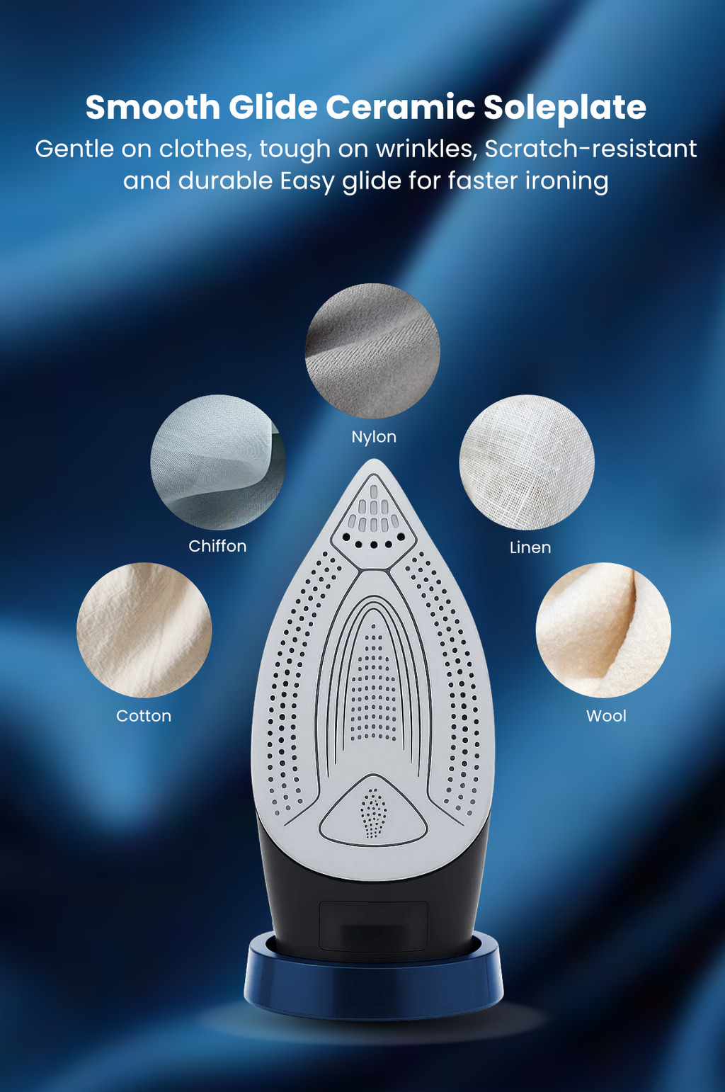 Soleplate: Ceramic scratch-resistant soleplate, smooth and fabric-safe