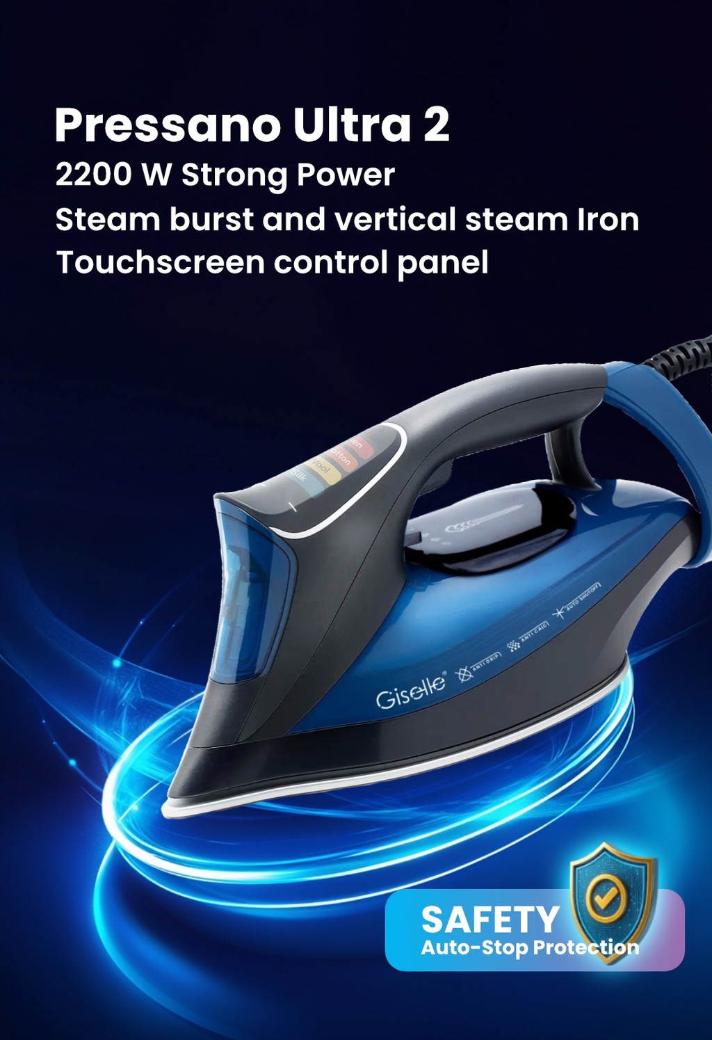 The Giselle Smart Steam Iron combines essential functions like LED temperature control, burst steam, anti-drip, and auto shut-off. It’s your perfect ironing companion for home and travel – suitable for all fabrics.
