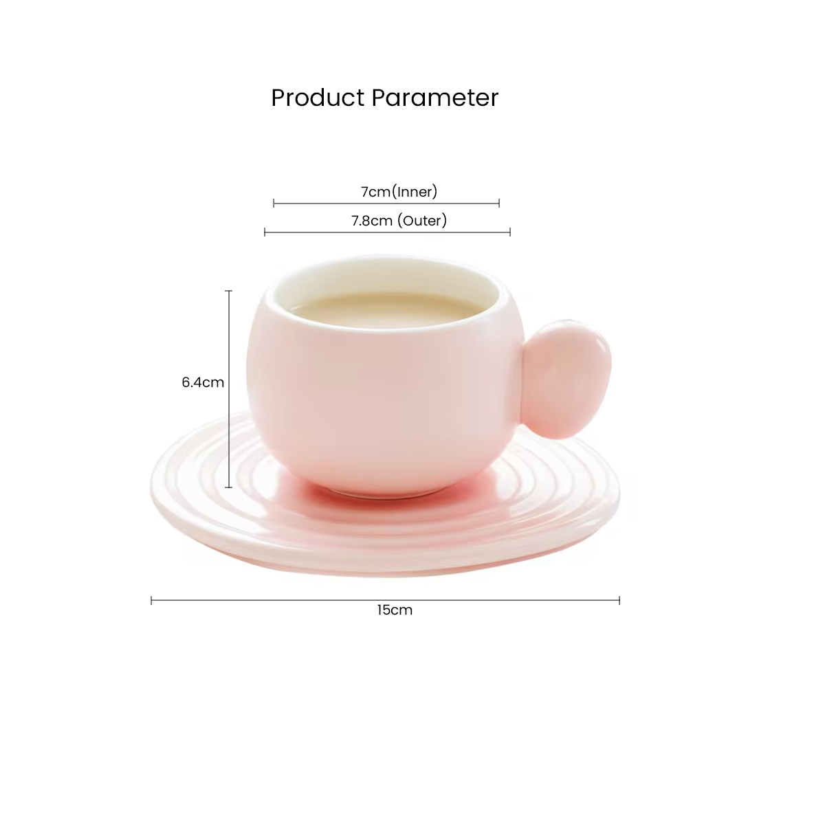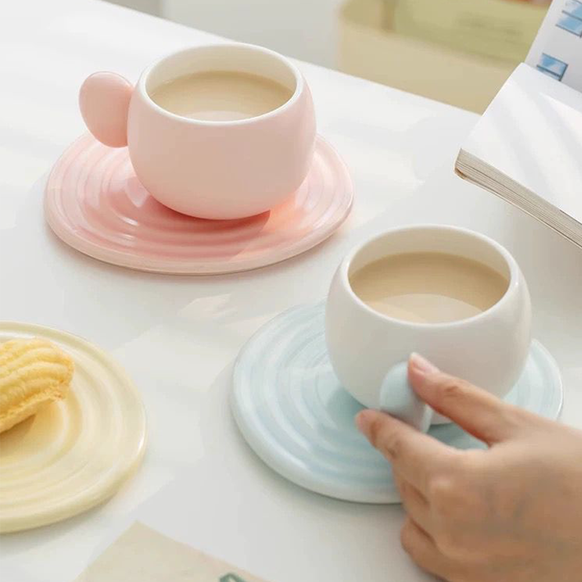This Nordic-style matte macaron cup combines minimalist elegance with a unique pastel ring design, exuding a refined charm. Available in warm pastel colors like pink, white, and yellow, it features a delicate round saucer that prevents spills while adding a touch of artistry. The matte finish offers a smooth, luxurious feel, and the ergonomic handle ensures a comfortable grip. Perfect for enjoying coffee, tea, or afternoon drinks, this cup is an excellent choice for personal use or as a thoughtful gift, showcasing a tasteful and sophisticated lifestyle.