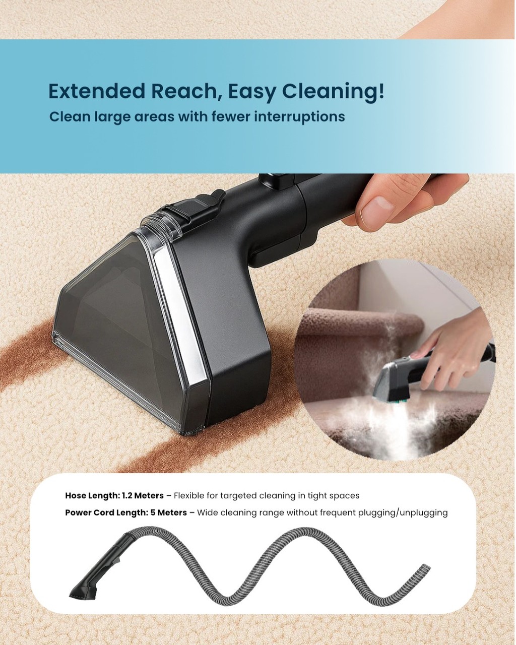 ✨ Comes with steam brush and hose cleaning tools for detailed cleaning.