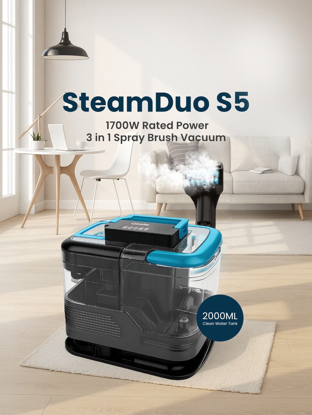 Giselle SteamDuo S5 1700W Hot Water Steam Spot Cleaner with 5m Long Power Cord | Wet & Dry Powerful Floor Carpet Sofa Fabric Cleaner —— KEA0364BU-M1