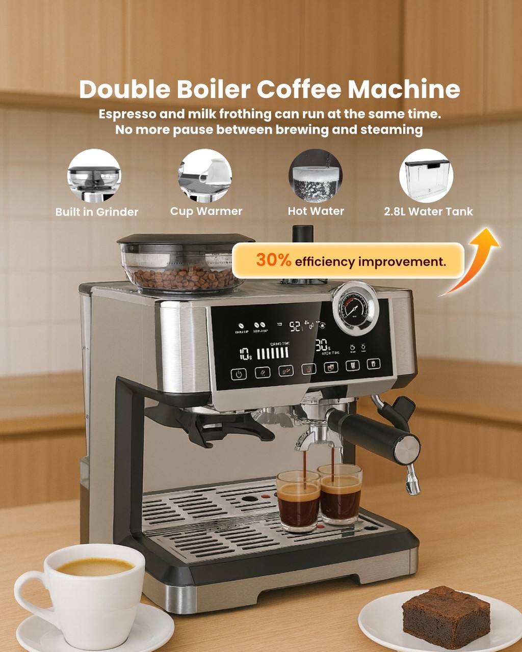 Dual Boiler System — Brew & steam at the same time