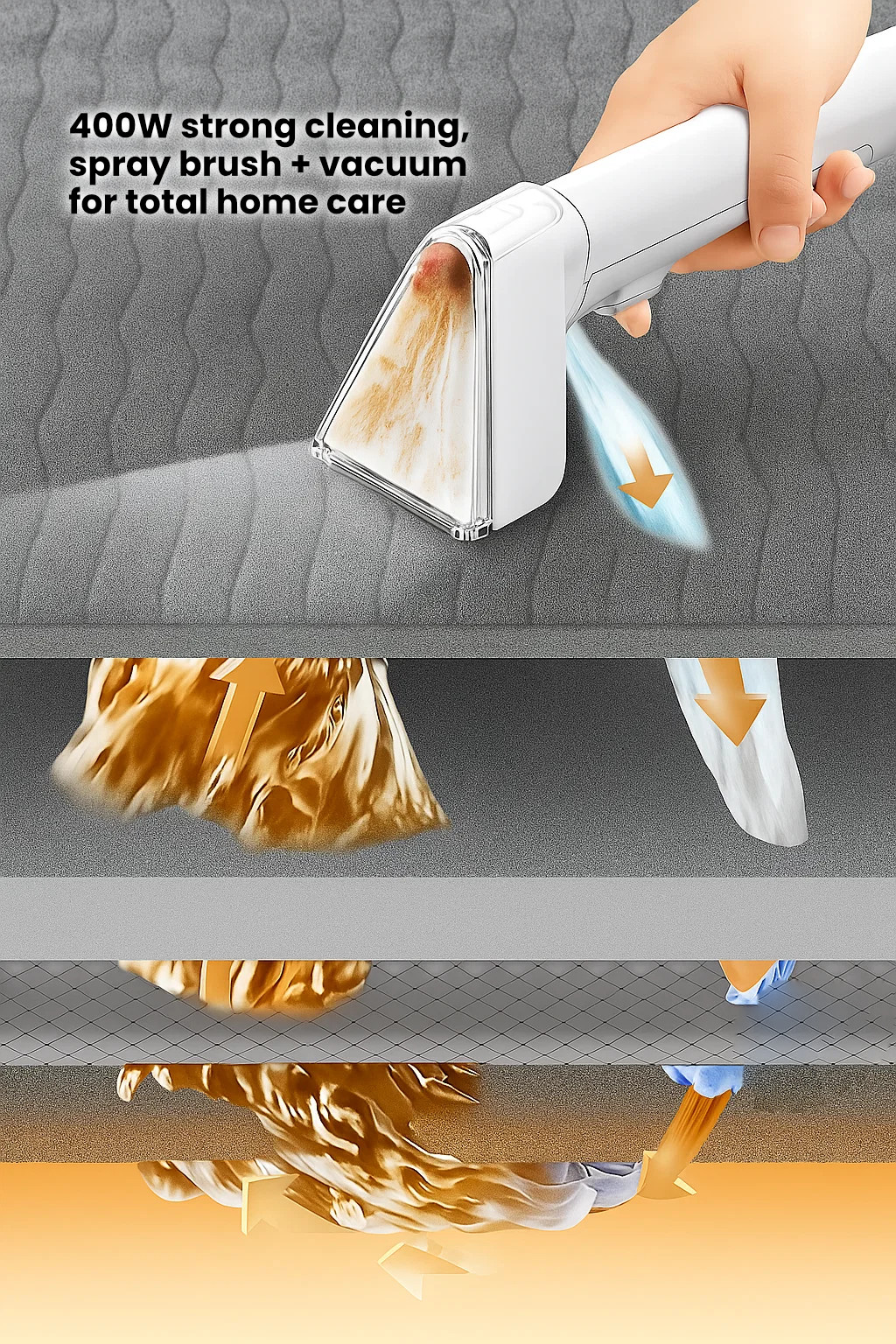 ✅ 400W strong suction power for both wet and dry cleaning