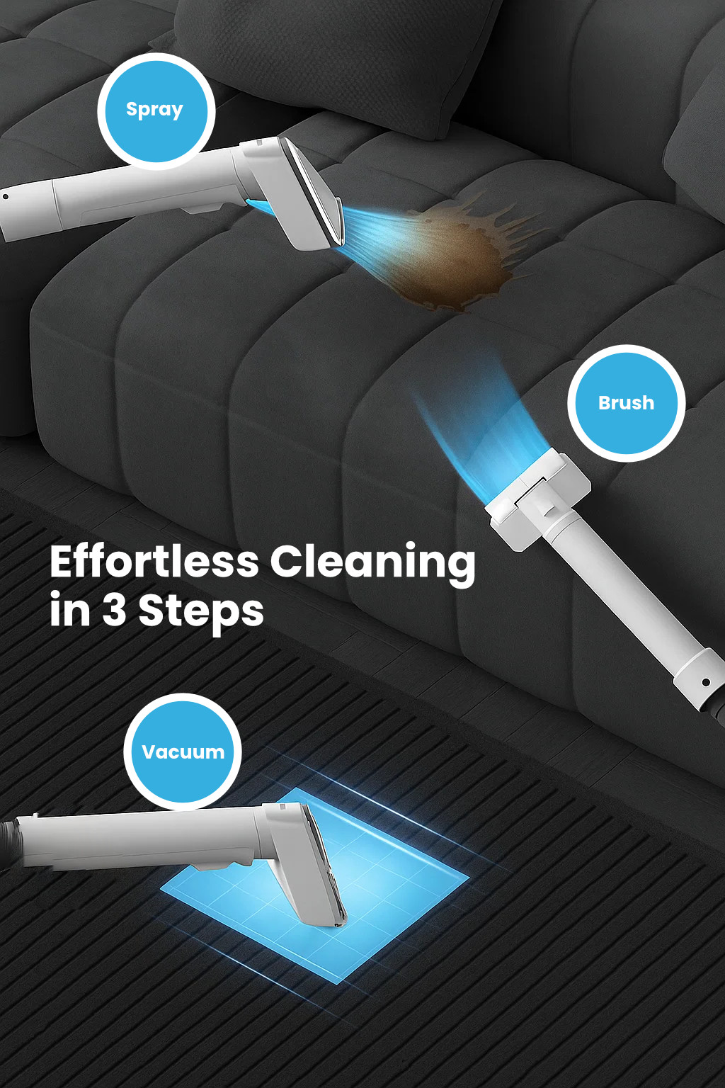 Functions: Vacuum, Water Suction, Spray Cleaning
