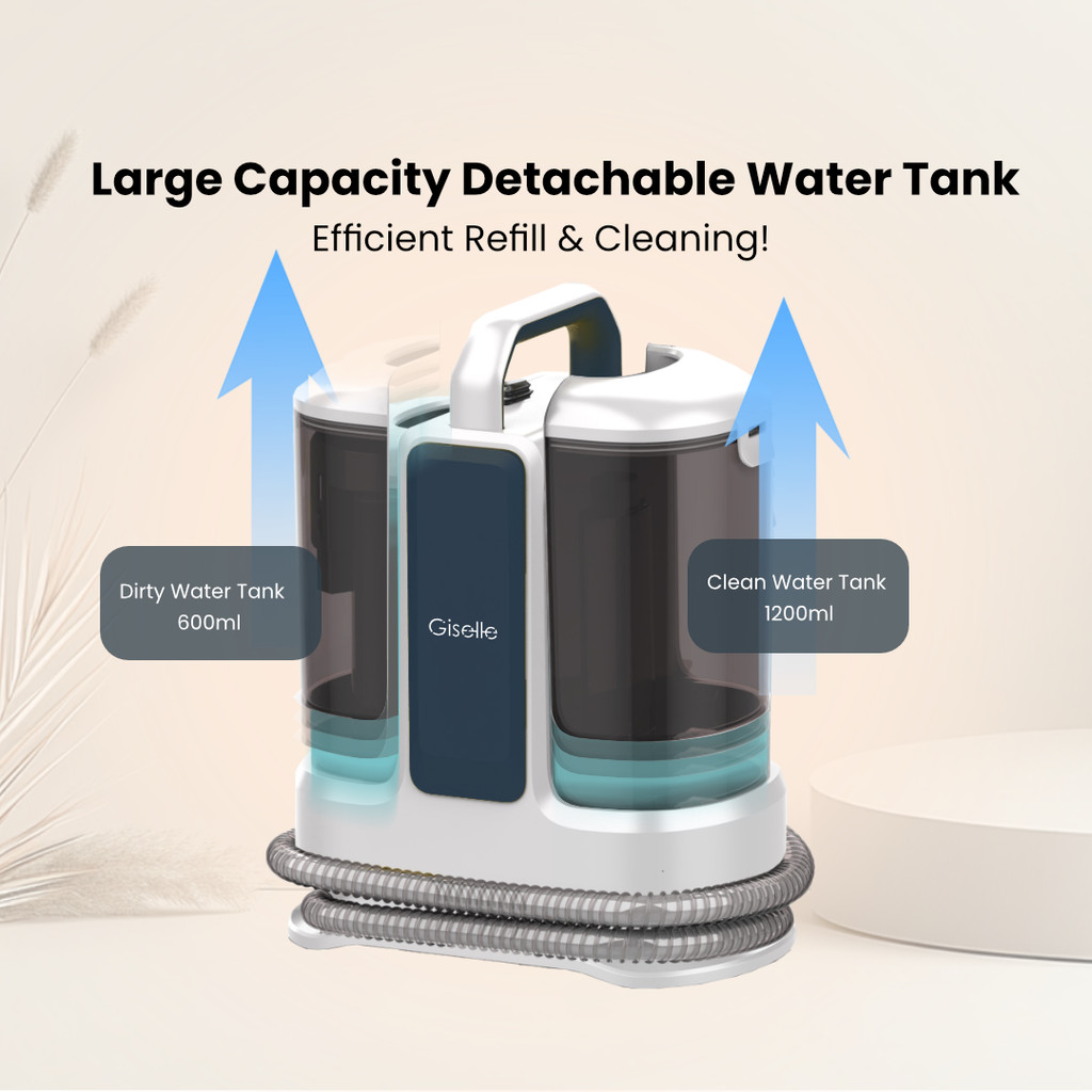 Pembersih Vakum Basah & Kering dilengkapi dengan motor berkuasa 400W, direka khas untuk pembersihan rumah dan kereta yang lebih berkesan. Dengan tangki air bersih 1.2L dan tangki air kotor 0.6L, ia menggabungkan fungsi semburan dan sedutan untuk mengatasi kotoran degil dengan mudah. Tangki air yang boleh ditanggalkan memudahkan proses pengisian dan pembersihan, manakala penutup berus lutsinar boleh ditanggalkan untuk dibilas dengan mudah. Reka bentuk yang kompak dan mudah alih menjadikannya sesuai untuk sofa, permaidani, fabrik serta bahagian dalaman kereta.